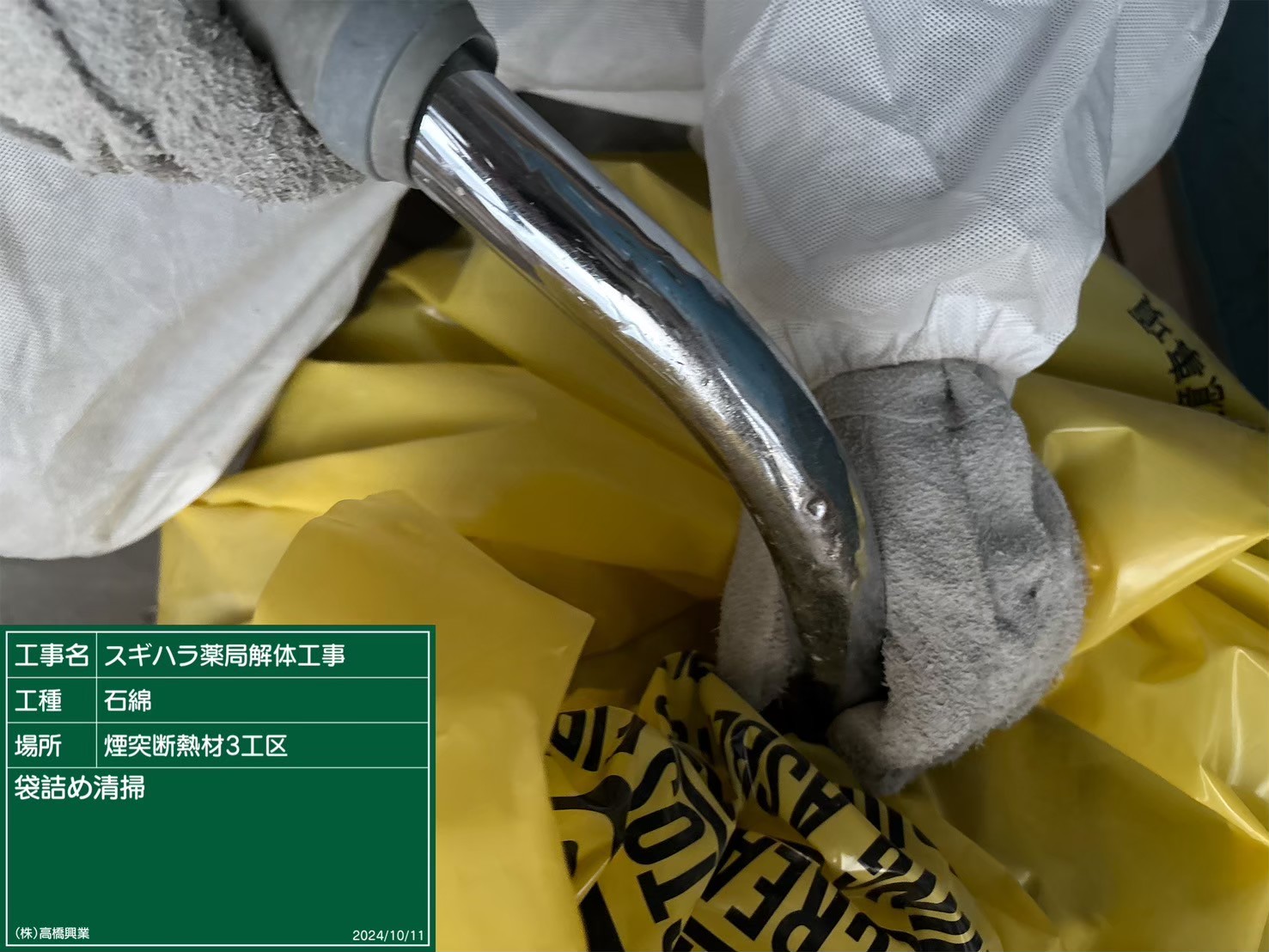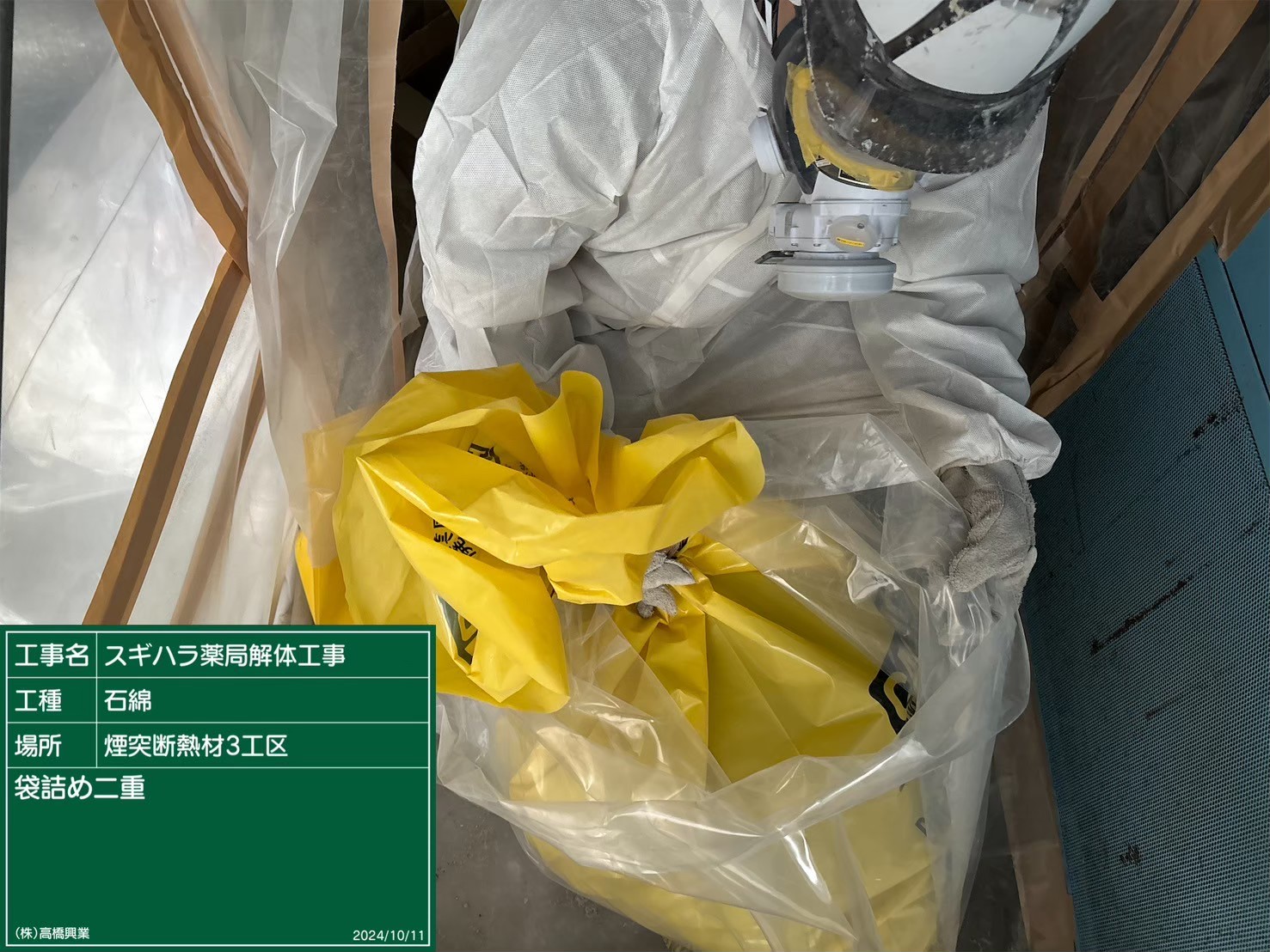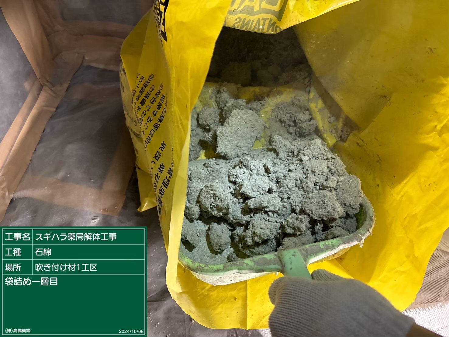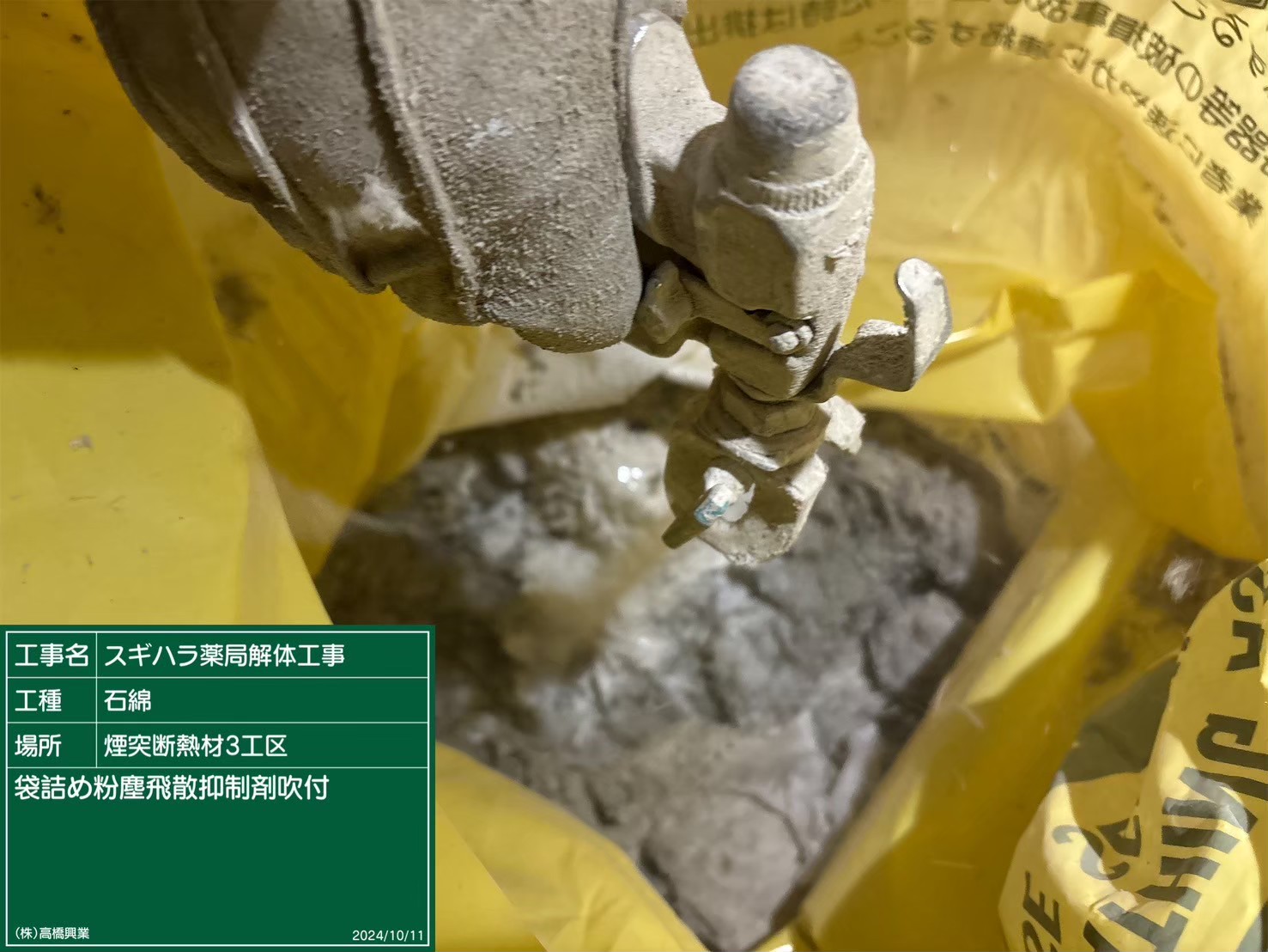 黒板の名前:袋詰め_粉じん飛散抑制剤吹付